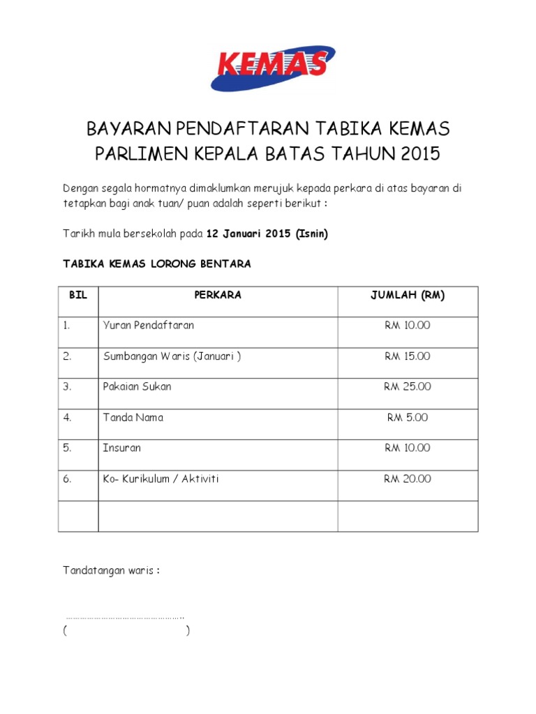 Bayaran Pendaftaran Tabika Kemas 2015 Pdf