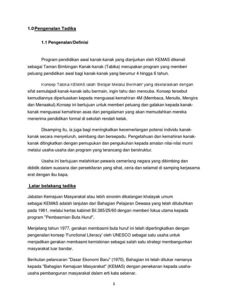 Program ini menitikberatkan perkembangan secara menyeluruh bersepadu dan seimbang. Separa manual Menggunakan borang yang dimuat turun. AP 1 TAHUN 2018 PENGOPERASIAN DAN PERATURAN KUTIPAN BAYARAN TABIKA DAN TASKA PERMATA KEMAS.
