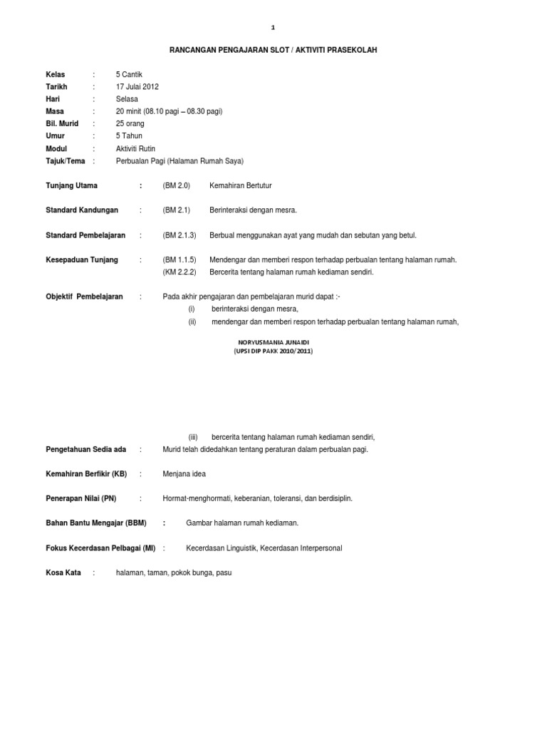 Rph Rancangan Pengajaran Perbualan Pagi Bertema Rumah Saya Pdf