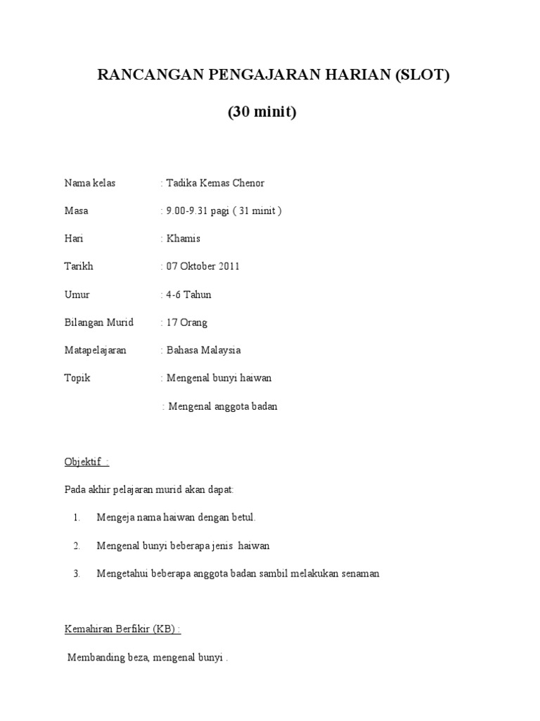 Rancangan Pengajaran Harian Pdf