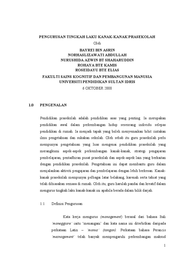 Pengurusan Tingkah Laku Kanak Kanak Pdf